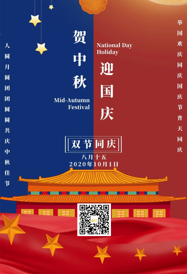 中秋,不忘送你祝福,愿你幸福與甜蜜團聚,開心和快樂重逢;國慶,不忘送你祝福,愿你財運與事業(yè)鼎盛,富足與無憂廝守;雙節(jié)毗鄰,深圳市億富興預祝你與好運相守。